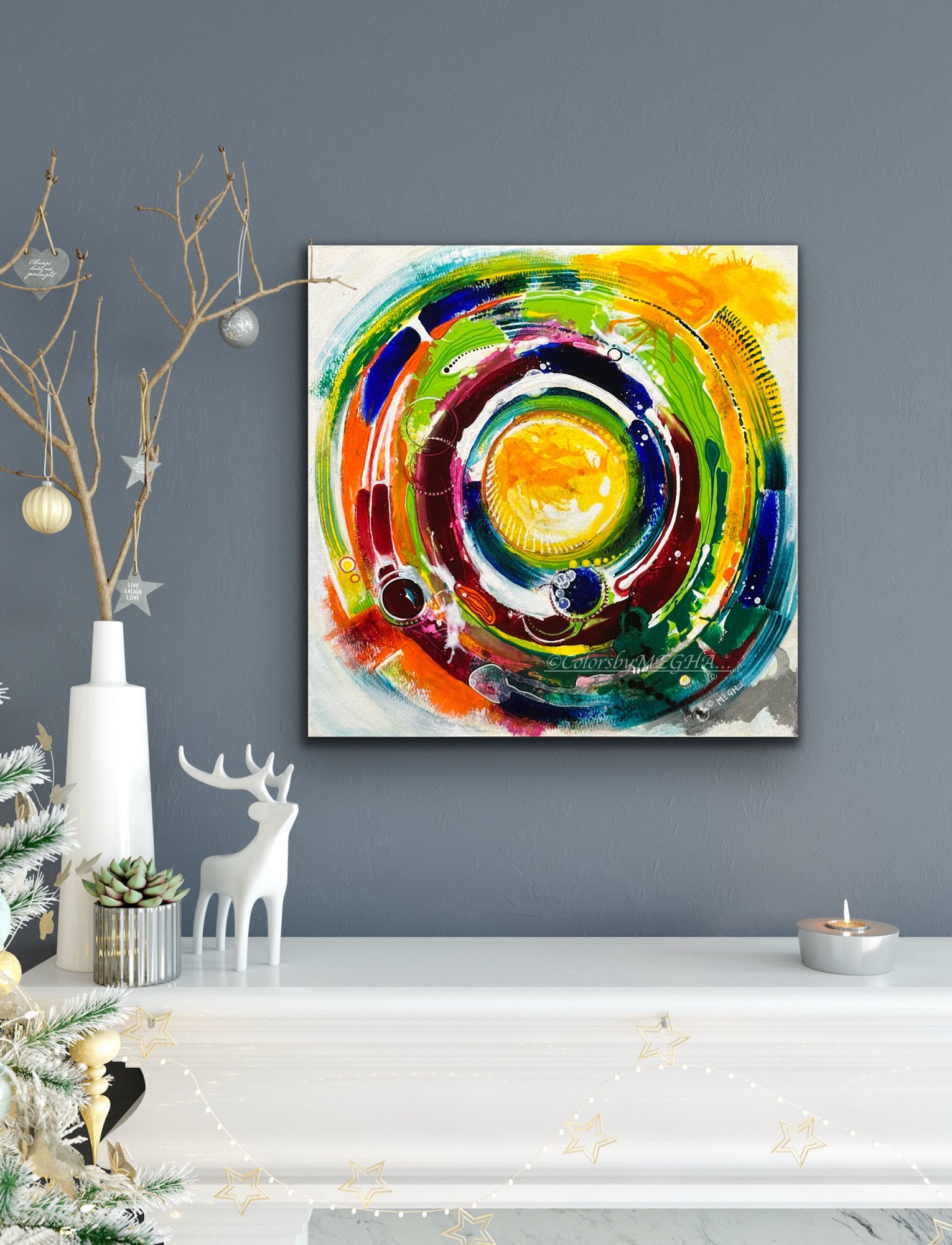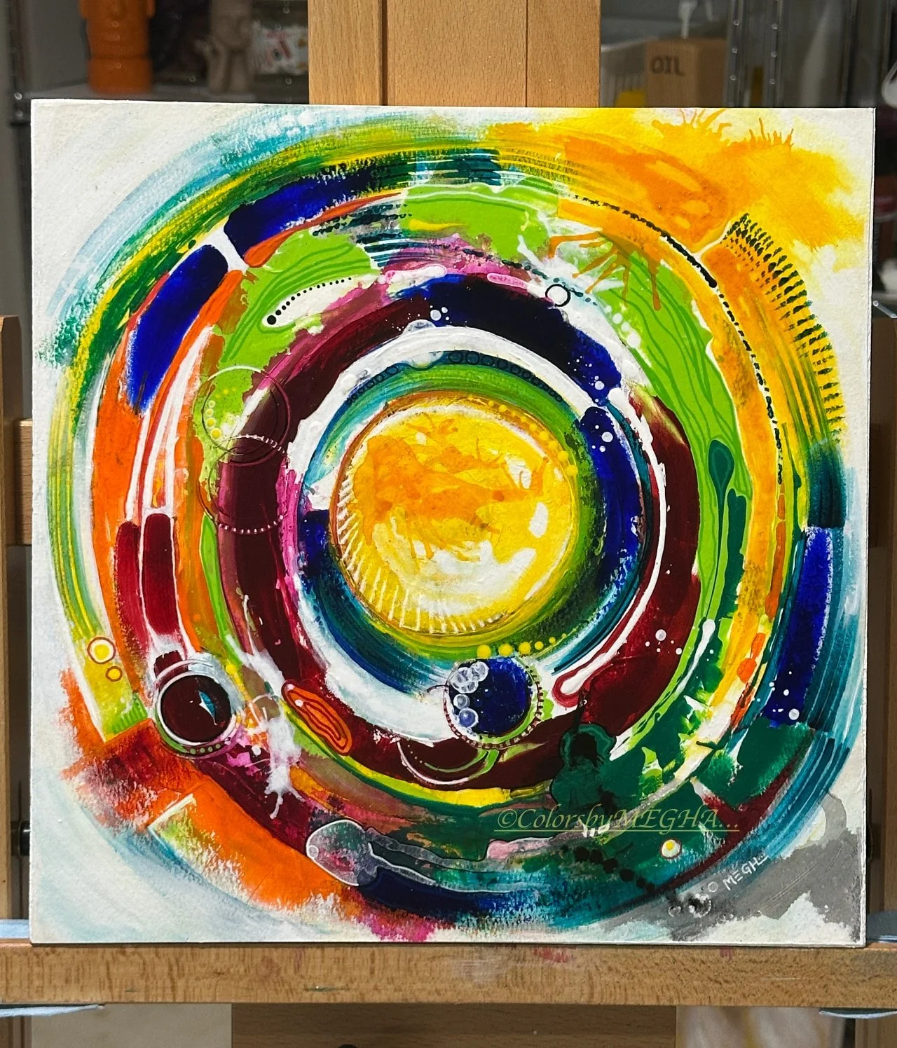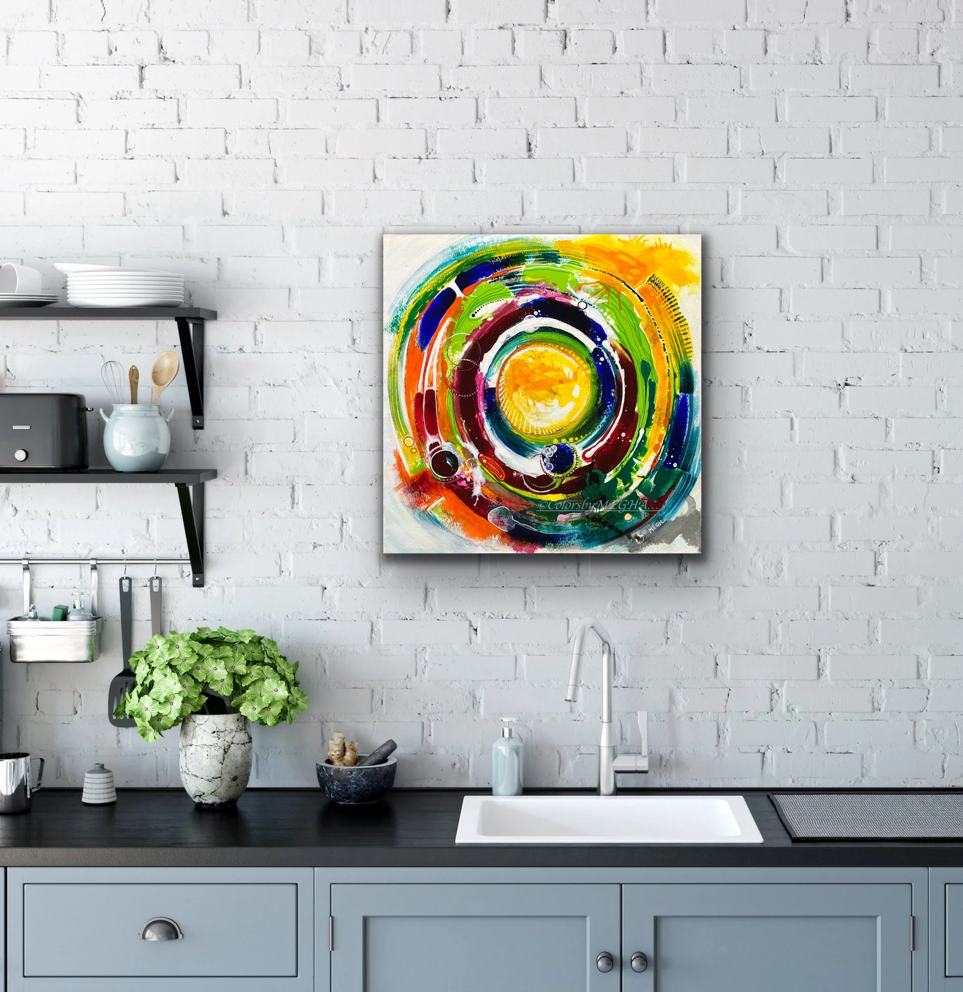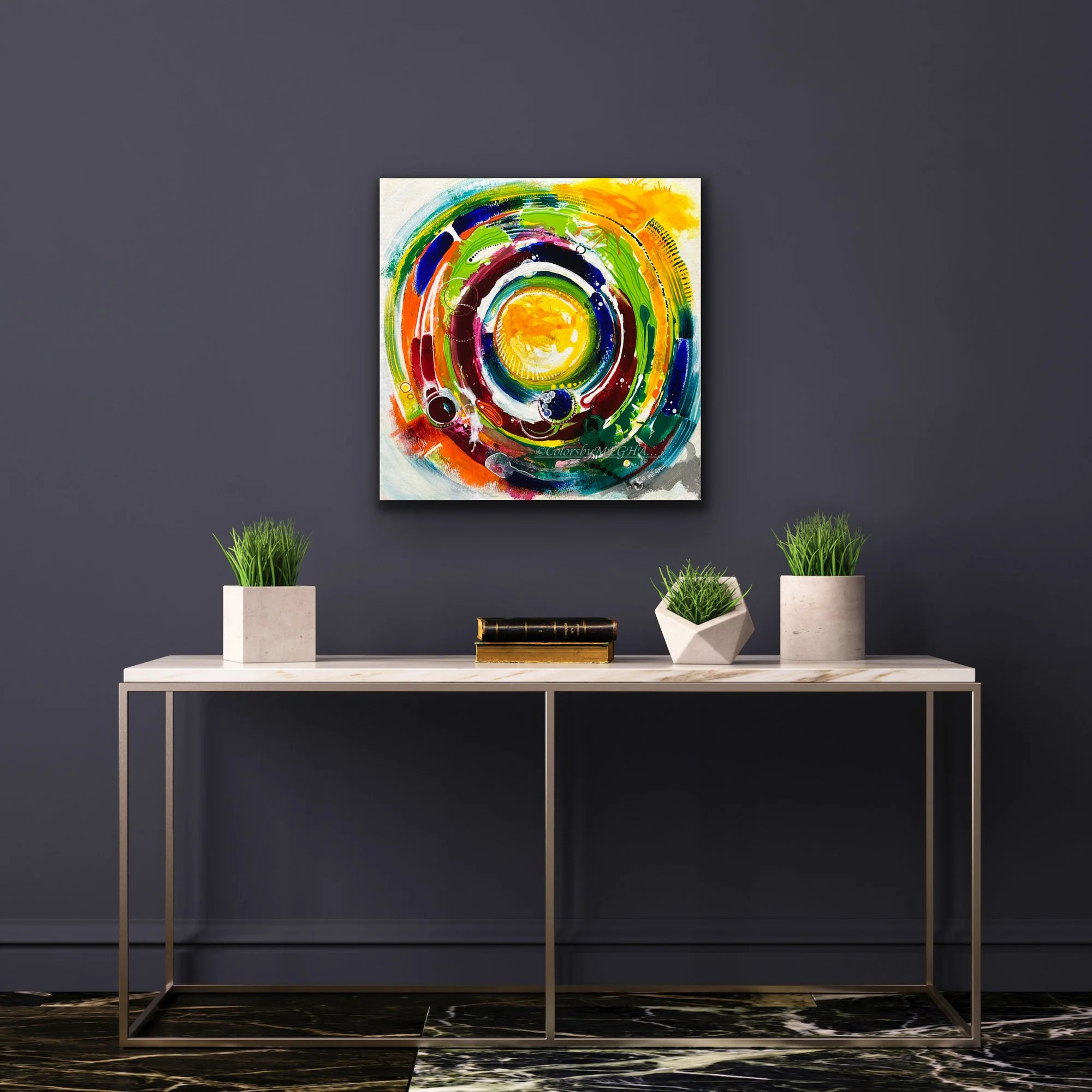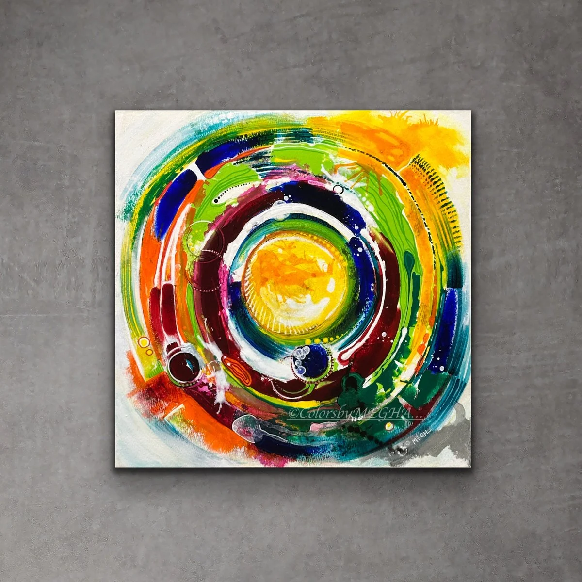 Medium: Acrylic Mixed Media on gallery-wrapped canvas, mounted in floating frame